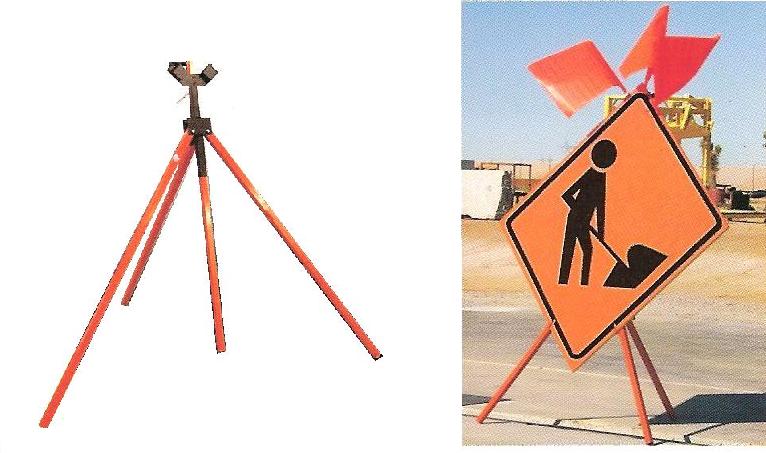 This heavy-duty tripod sign stand has three pivoting legs and a sliding mast that accommodates 36- and 48-inch rollup and rigid signs. It comes with a triple flag-holder and allows for compact storage. Ship weight, 18 lbs.